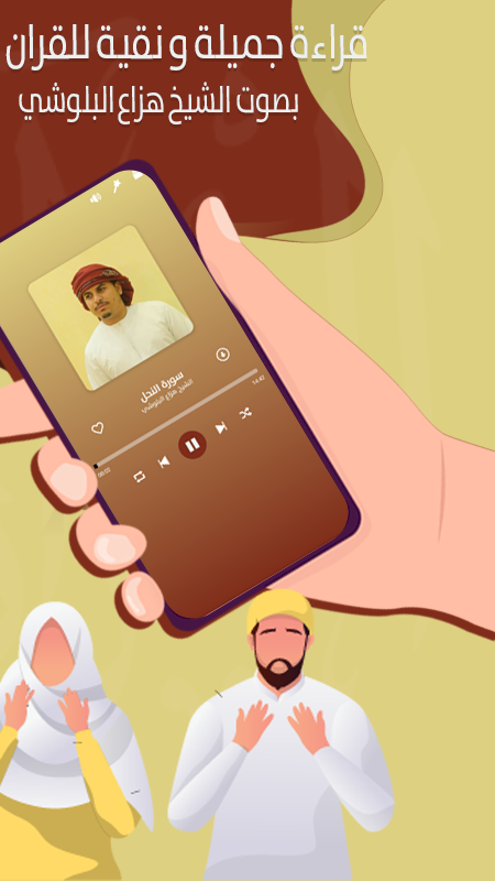 الآن يمكنك استخدام التطبيق بكل سهولة والاستماع لسور القرآن الكريم بصوت الشيخ هزاع البلوشي وعيش حالة إيمانية رائعة تتعمق فيها في معاني القرآن الكريم مستمتعًا بصوت الشيخ هزاع البلوشي الذي ينقلك لعالم آخر بصوته المميز.