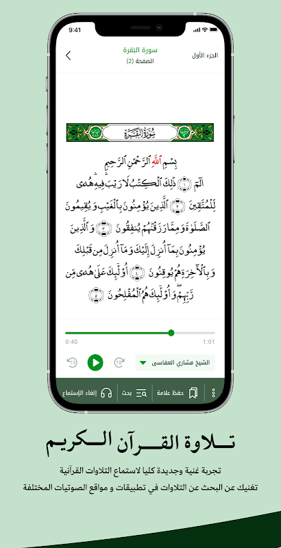 8- 다른 많은 기능도 있습니다. 이제 인터넷 없이도 전체 꾸란 애플리케이션을 다운로드하여 발견할 수 있으며, 최고의 웅장함과 아름다움을 지닌 신앙의 시대를 살게 될 것입니다.