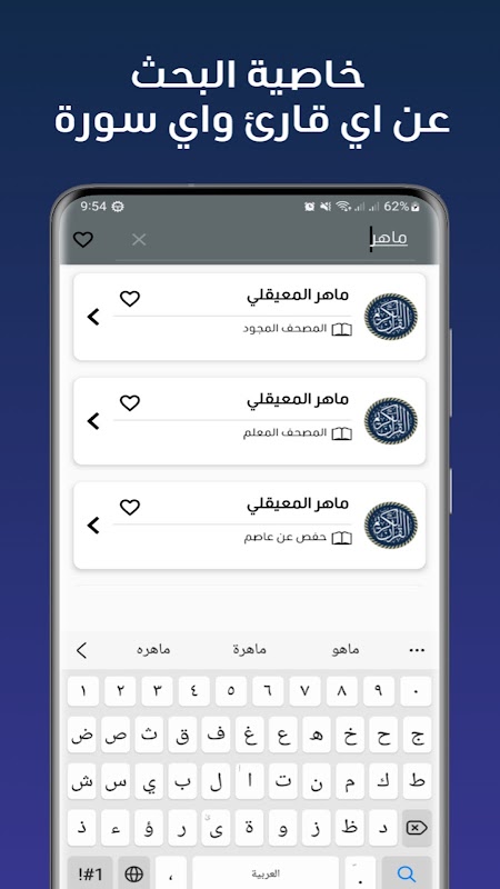 모든 암송자의 목소리와 함께 고귀한 꾸란의 응용 프로그램에는 230명 이상의 암송자와 가장 유명한 소설이 포함되어 있습니다