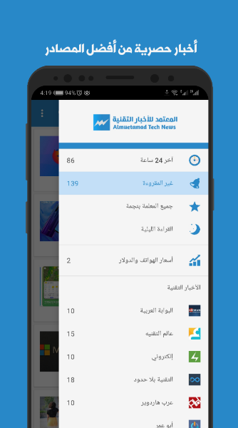 تم تصميم هدا التطبيق ليجعلك علي أطلاع دائم ومستمر علي أخر أخبار التقنية وجديد الهواتف والتطبيقات من أغلب وأفضل المصادر الموثوقة