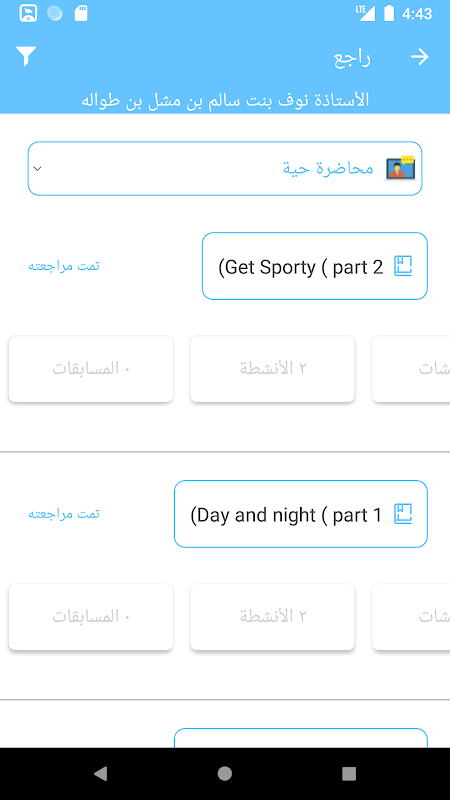 • مراجعة تفاصيل الدروس وما تحتويه من مواد إثرائية وتفاعليه مفيدة للطالب.
