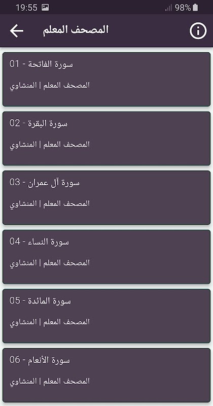 꾸란 응용 프로그램의 인터페이스는 매우 간단하여 쉽게 사용할 수 있습니다.