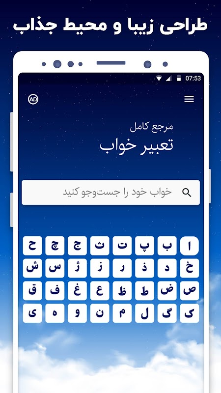 • قابلیت جستجوی رویا ها و دسته بندی تعبیر خواب بر اساس حروف الفبا