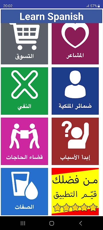 상점 수준에서 가장 유명한 아랍어 프로그램 인 초보자에게 인터넷없이 빠르게 스페인어를 배우십시오. 이는 다른 프로그램과 비교하여 스페인어를 배우는 가장 좋은 응용 프로그램입니다.