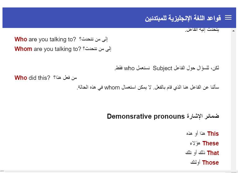 초보자 규칙에 대한 기본 영어 응용 프로그램의 기본 사항을 알아. 망 또는 인터넷을 사용하지 않고 아랍어 해설.