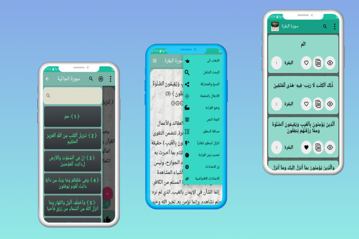 ◉ 수라의 모든 구절을 포함하는 사이드 메뉴로 빠른 프레젠테이션 및 전환이 가능합니다.