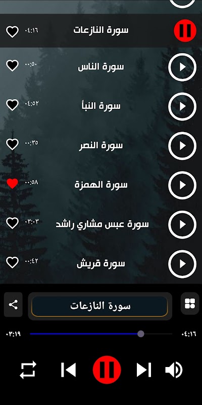 1- 애플리케이션에는 사용자가 듣고 친구들과 공유할 수 있는 Juz Amma Mishari Al-Afasy 라이브러리가 포함되어 있습니다.