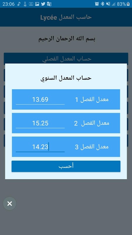 Lycée는 학생, 부모 또는 알제리 교사를 돕는 안드로이드 응용 프로그램으로, 알제리의 2 년 무대의 모든 학년 및 학과목에 대한 많은 학습 률과 신청서에 의해 계산 된 비율