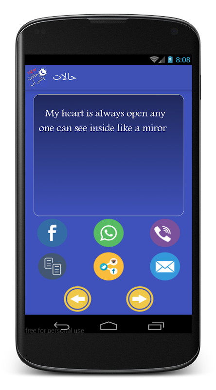 يحتوي هذا التطبيق على حالات وكلمات جميله للفيس بوك و الواتس اب