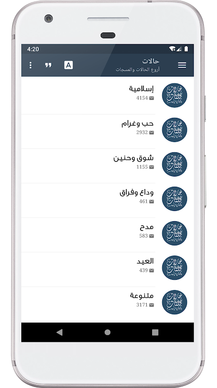-응용 프로그램 섹션 "아침 간행물, 저녁 간행물, 이슬람 간행물, 마음을 위로하는 Duas 간행물, 결혼 축하 게시물,