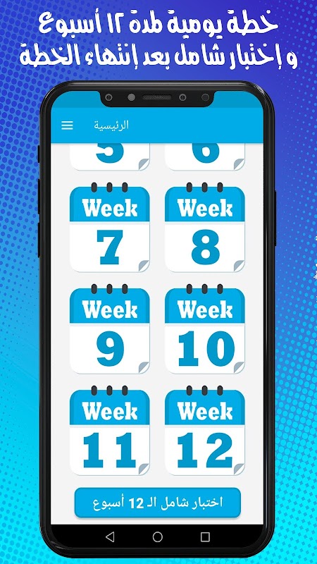 - ألبيل العربية العربية العربية العربية العربية العربية العربية العربية العربية العربية العربية العربية العربية المعلية و يوجد إختبار شامل في نهاية الخطة يشمل ال12 أسبوع.