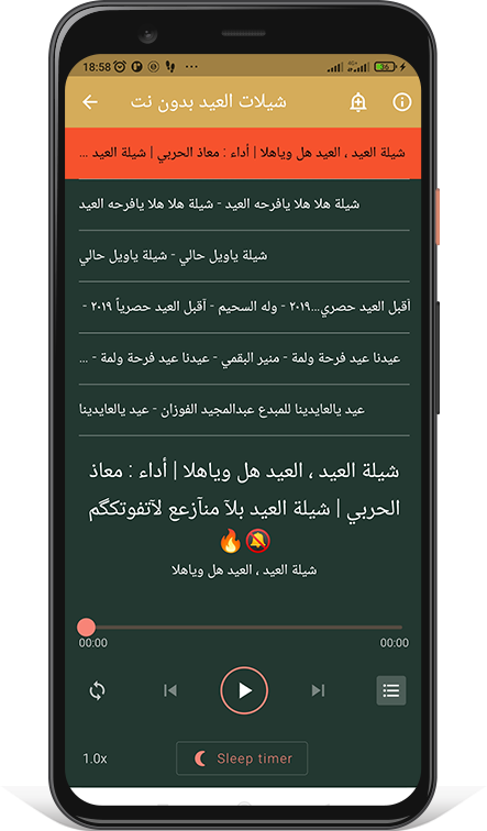 حمل التطبيق بالمجان .لا تحتاج للاتصالك بالانترنت للاستماع الى أجمل شيلات العيد ٢٠٢٢ بدون انترنت التطبيق بتصميم تفاعلي انيق وجذاب ومتوافق مع كل الأجهزة ، سهل الاستخدام و بدون أي تعقيدات في التشغي