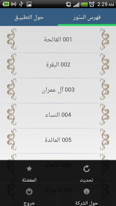 إمكانية تحميل اي سورة على الجهاز والاستماع لها بدون الاتصال بالانترنت.