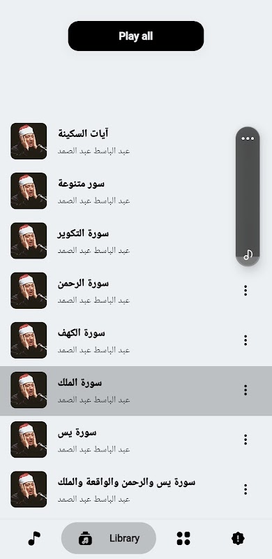 그것은 암송자 Abdul Basit Abdul Samad를 위한 고귀한 꾸란에서 선택된 수라를 포함합니다.