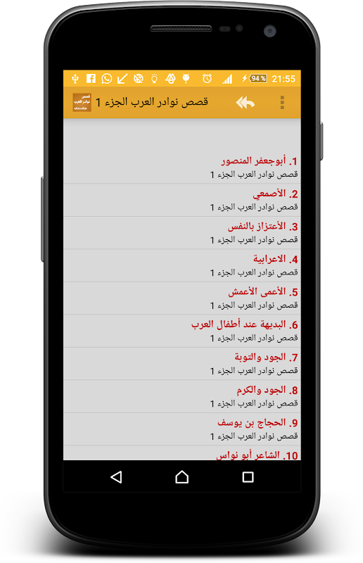 يشتمل تطبيق قصص نوادر العرب بالصوت على أكثر من 26 رواية طريفة من مختلف العصور مثل العباسي والاموي وغيرهم مستوحات من عبق
