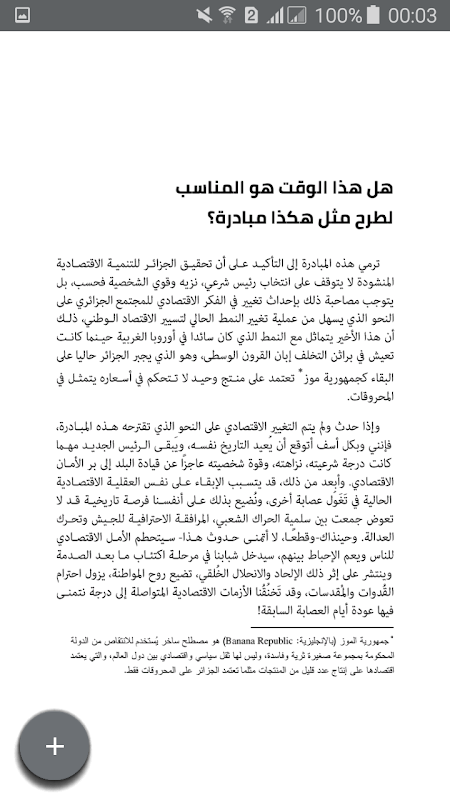그의 소개에서 의사는 생애 처음으로 알제리를 방문한 관광객의 예를 들어, 매우 중요한 지리적 위치와 빈곤의 손아귀에있는 사람들과 일할 준비가 된 대다수와 부패한 부패 사이의 심리적 문제로 고통받는 음란 한 천연 자원과 실업자 청년 사이의 큰 모순을 본다. 나라는 희망을 죽이고 있습니다.