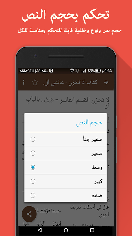 - لقراءة اكثر وضوحا يمكن تغيير حجم الخط