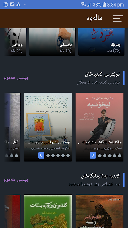 کتێبەکان له چهند بهشێكی جیاوازهوه دانراون وهك چیرۆك و رۆمان و شیعر و مێژوو و فهلسهفی و زانستی و ئایینی و زمانهوانی و ایرهیایی اییییی کهێکی کهێکی کهێکی کهێکی کهێکی کهێکی کهێکای کهێستی و ایران دهتوانی ڕاستهوخۆ كتێبهكه بخوێنیتهوه له ئاپهكه یاخود دهتوانی پهرتووكهكان دابهزێنی.