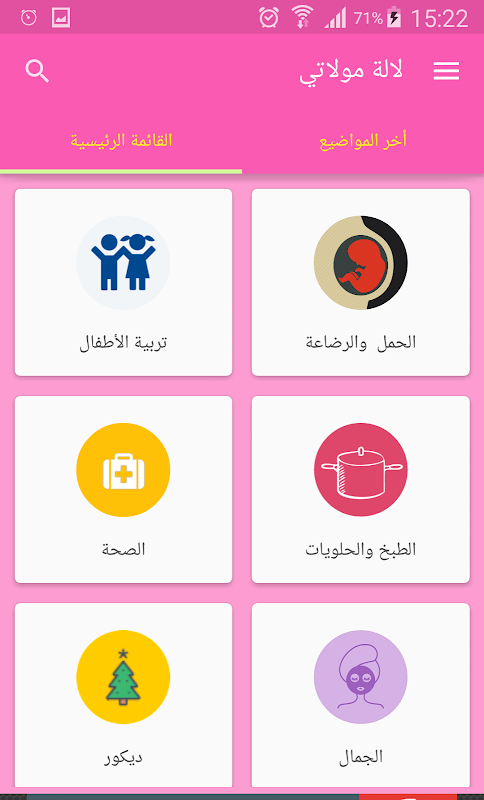 قسم الصحة: لم يغفل التطبيق كذلك على الجانب الصحي للمرأة فهو يعطيك وصفات ونصائح للوقاية والعلاج من الامراض