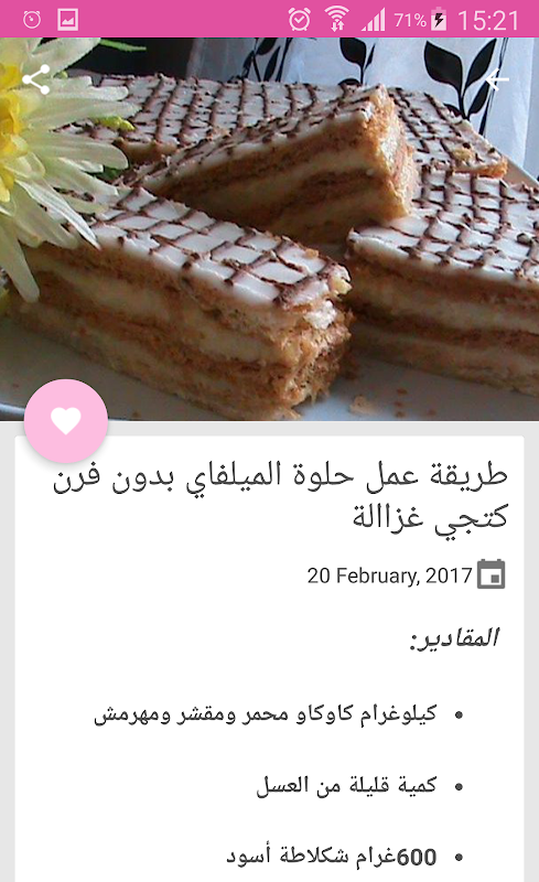 قسم الطبخ والحلويات : الذي يحتوي على وصفات شهيوات لالة مولاتي والحلويات و كيكة بجميع الطرق و الاشكال و النكهات