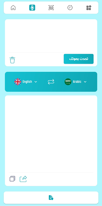 음성은 Speak with your voice 버튼을 누르고 아랍어나 영어로 원하는 단어를 발음하기만 하면 됩니다. 그러면 흰색 상자에 음성이 표시되고 자동으로 번역됩니다.