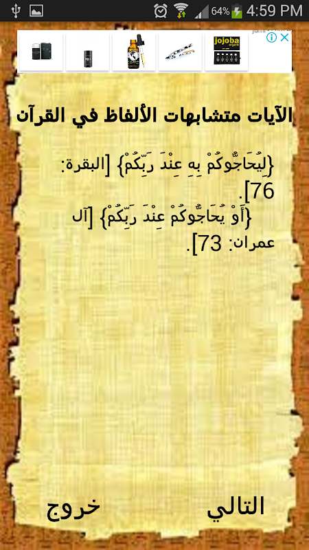 하나님의 이익을 보존하고 Similars 참조에서 오류를 설치 절약 하나님의 책을 공부가 아닌 5 월에 코란 단어의 일부 유사한 구절을 표시하는 간단한 응용 프로그램