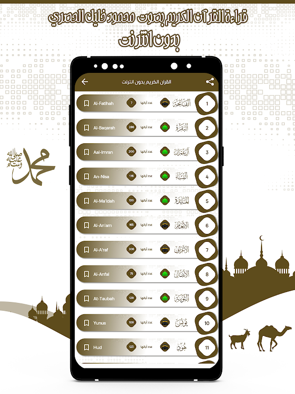 Net 없이 Mahmoud Khalil Al-Hosary의 음성이 포함된 완전한 꾸란 응용 프로그램의 정의 ⭐