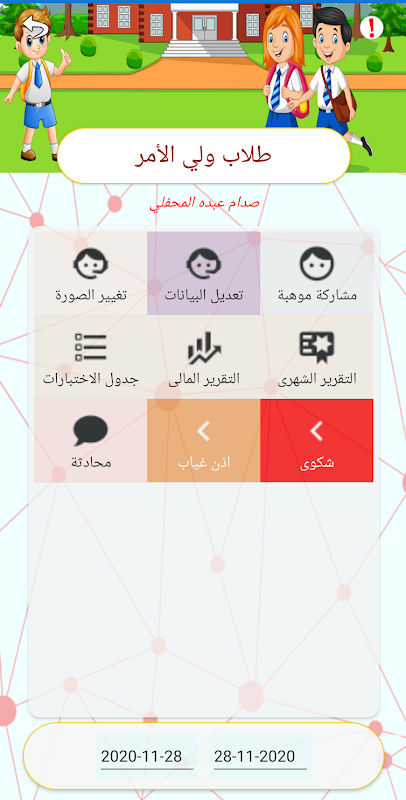 이 응용 프로그램은 학교 행사 및 활동의 디지털 후속 조치 및 전자 보관을위한 것입니다. 그리고 학교와 학부모 간의 의사 소통 수단은 매일 학생을 추적하고, 수업 일의 과정을 기록 및 확인하고, 즉시 학부모와 공유하는 것과 관련이 있습니다. 반면에 교사들에게 과제를 분배하여 부하를 줄이고 작업이 더 쉬워지며 과제가 쌓이지 않도록하는 것을 목표로합니다. 모든 교사는 자신의 정보에 관심을 갖고 데이터를 입력하며 관찰 및 문의에 쉽게 응답합니다. 응용 프로그램은 관리, 통계 및 비교에 필요한 모든 작업을 제공하고 액세스 권한이있는 사람들을 위해 정보에 대한 액세스 및 데이터에 대한 액세스를 용이하게합니다. 모든 데이터가 제어되는 컴퓨터 또는 웹 사이트없이 전화를 통한 통합 관리 및 전화 응용 프로그램을 통해 처리됩니다. 물론 컴퓨터에 직접 연결할 수 있습니다. 응용 프로그램은 수준으로 나뉘어 학교에서 도달하려는 야망을 결정하므로 학교는 수업과 의무를 기록하는 것만으로 시작한 다음 전체 활성화에 도달 할 때까지 다음 수준을 활성화하려고 할 수 있습니다 수업 및 의무의 모든 프로세스를 포함하여 성적 입력, 학업 메모 기록, 자료의 행동 및 기술 평가를 포함하는 응용 프로그램 채팅 및 인스턴트 채팅을 활성화하거나 비디오 수업을 보내고 토론 및 상호 작용을 공개하거나 마지막으로 오디오 및 비디오 .. 및 학교에서 원하는 다른 많은 세부 사항 및 옵션을 사용하여 원격으로 대화 형 세션을 제공합니다.