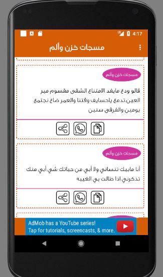 ومن الكلمات المفتاحية الدالة على محتوى التطبيق مسجات حزينة ورسائل حزن وألم :