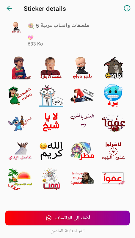 이 프로그램에는 WhatsApp용 모로코 Kabour 스티커뿐만 아니라 많은 재미있는 스티커가 포함되어 있습니다.