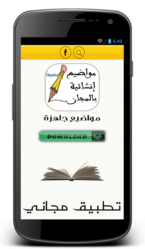الكل يجد صعوبة في البحث عن موضوع محدد من أجل تحضير إنشائه المدرسي، الآن مع تطبيق مواضيع إنشائية جاهزة لا مجال للخوف من تلك المواضيع لأن التطبيق يحتوي على مجموعة من المواضيع الإنشائية الجاهزة في جميع المجالات، ما عليك سوى تحميل التطبيق و الإستفادة منه.