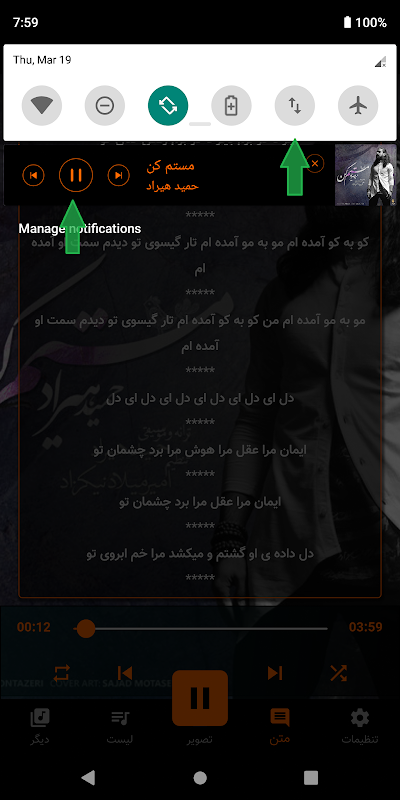 -پخش و کنترل موزیک ها در پس زمینه و حتی در حالت قفل گوشی!