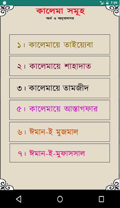 কালেমা-ই-addition 추가 정보 : এর্থ বাংলা অনুবাদ ও ইললিশ অনুবাদ.