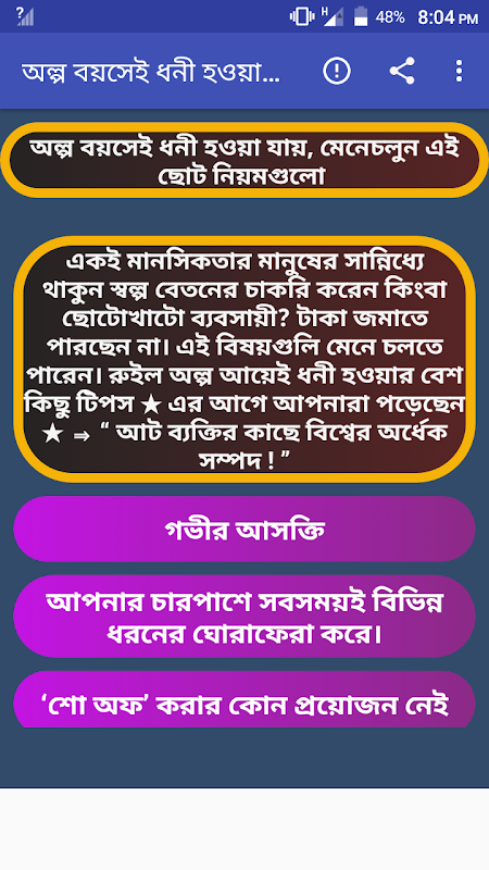 এর আগে আপনারা পড়েছেন আট ব্যক্তির কাছে বিশ্বের অর্ধেক সম্পদ । তাই আপনাদের জন্য নিয়ে আসলাম ছেটো একটি এ্যাপস এ্যাপটির নাম অল্প বয়সে ধনী হওয়ার উপায়।