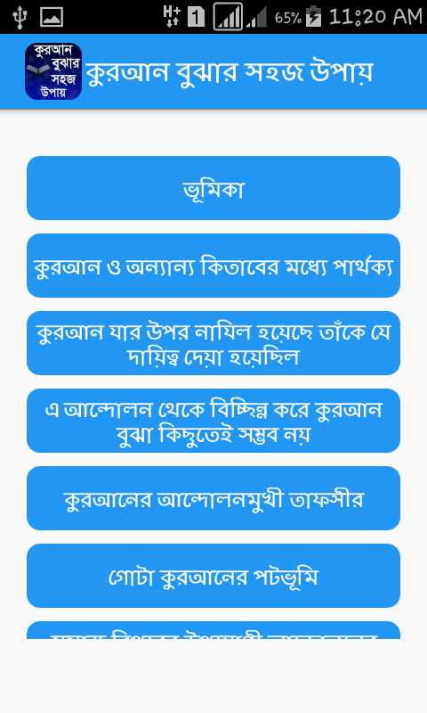 আমরা মুসলমান । আর পবিত্র কোরআন আমাদের ধর্ম গ্রন্থ। এই পবিত্র কিতাব মানবজাতির দিশারী । তাই কিভাবে পড়লে কোরআন সহজে বোঝা যাবে । তা নিয়ে বিস্তারিত আলোচনা করা হয়েছে আমাদের এই এপ্সটিতে । আশা করি আপনারা ভাল লাগবে । যদি কোন সমস্যা মনে করেন তাহলে অবশ্যই আমাদের নক করবেন । কোন অভিযোগ থাকলে আমাদের জানাবেন । আর আপনাদের কি ধরনের এপ্স পছন্দ আমাদের অবশ্যই জানাবেন । আমরা চেষ্টা করব তৈরি করার জন্য। (islamic apps)