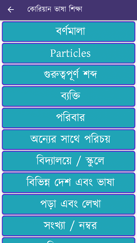 আমি এই অ্যাপে কোরিয়ান ভাষার কিছু ধারনা দিতে চেষ্টা করেছি। যেমন,