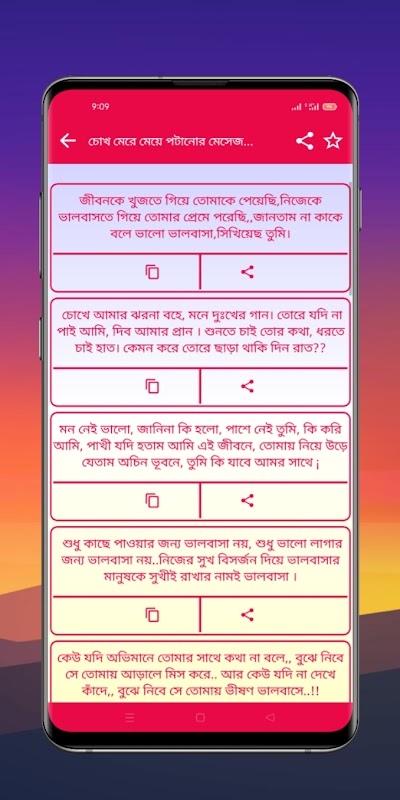 그래서 이번 이벤트는 소녀들을 미친듯이 사랑하게 만드는 것입니다. 우리는 매일 좋아하는 사람들을 보지만 사랑한다는 말을 하는 것이 두렵습니다. 그래서 우리는 당신이 당신의 사랑하는 사람을 볼 때 매일 계속 말하는이 앱에 몇 가지 SMS가 있습니다. 그가 당신과 혼자 이야기하고 싶어하는지 확인하십시오. 그리하여 그와 좋은 관계를 맺으십시오. "로맨틱 러브 SMS" "난이도 SMS" "소녀 유혹 메시지" "뱅글라 SMS" "새로운 사랑 SMS" "충격 떨림 고통 SMS" (사랑 SMS) 등