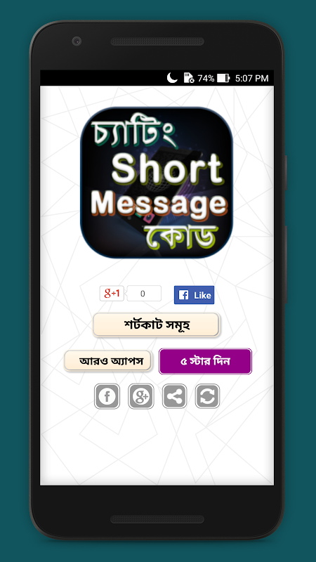 Sms ও চ্যাটিং করুন শর্টকাট কোড লিখে চ্যাটিং এ ব্যবহৃত শর্টকাট কোড চ্যাটিং ও sms লিখার শর্টকাট কোড যা আপনাদের খুবই উপকারে আসবে। এই অ্যাপটি ব্যবহারের মাধ্যমে আপনি হয়ে উঠবেন চ্যাটিং গুরু। ধন্যবাদ আমাদের সাথে থাকার জন্য।