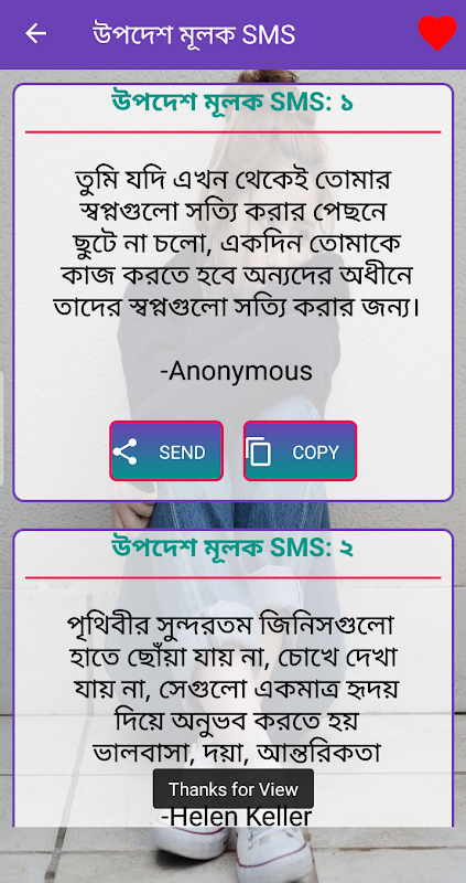 সেই কষ্টকে সহ্য করতে না পেরে অনেকেই এই পৃথিবীর বুক থেকে চিরতরে চলে যায়।এই অ্যাপটিতে রয়েছে সকল ছ্যাকা খাওয়া দুঃখের এসএমএস ।