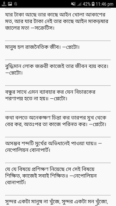 Bangla bani / bangla quotes/ bikkhatoukti/ bangla ukti / bangla quotation is a bangla apps which is a collection of inspirational quotes in bangla. In this bikkhato ukti bangla apps hundreds of “quotation in bangla”, quotes in bengali , bengali quotation, bengali quotes are included. There are lots of famous people out there. Their famous quotes bangla is accumulated in this “quotation in bengali” app. In bengali famous persons are called bikkhato or monishi. So this bangla app can be named as bikkhato ukti, monishider ukti, bangla ukti, bangla bani, banglay bani, banisomogro etc. The key persons included in this bangla quotes/ bangla quotation/ quotes in bengali/ quotation in bengali /bangla bani