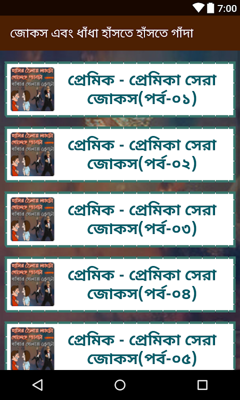 হাসির জোকস (Bangla hasir jokes) ও মজার কৌতুক আমাদের বিশেষ পছন্দ। কারণ আমরা সকলেই হাসতে পছন্দ করি। পেট ফাটানো হাসির জোকস নিয়ে এই আকর্ষণীয় অ্যাপটি ডেভেলপ করেছে।