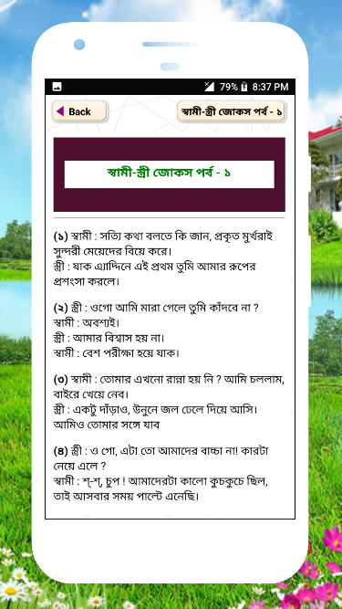 Jocks app impact on mind, jocks in bangla is important for alone. best laughing jokes give cheerful moment. We collect new laughing jokes from various sources. We prefer funny jokes bangla which is funny jokes app. Compile many funn jokes, jokes bangla which is called funny jokes app in bengali.