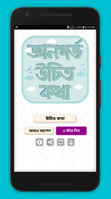 আশাকরি "জ্ঞানগর্ভ উচিত কথা"শিরোনামের এই অ্যাপটি ব্যাবহার করে আপনারা প্রাত্যাহিক জীবনে অনেক উপকৃত হবেন এবং আত্মীয় স্বজন বন্ধু বান্ধবদের ব্যাবহার করার সুযোগ করে দিবেন.