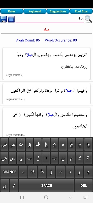 단어 의미, 암송, 검색 아랍어 키보드로 Al Quran의 궁극적 인 연구