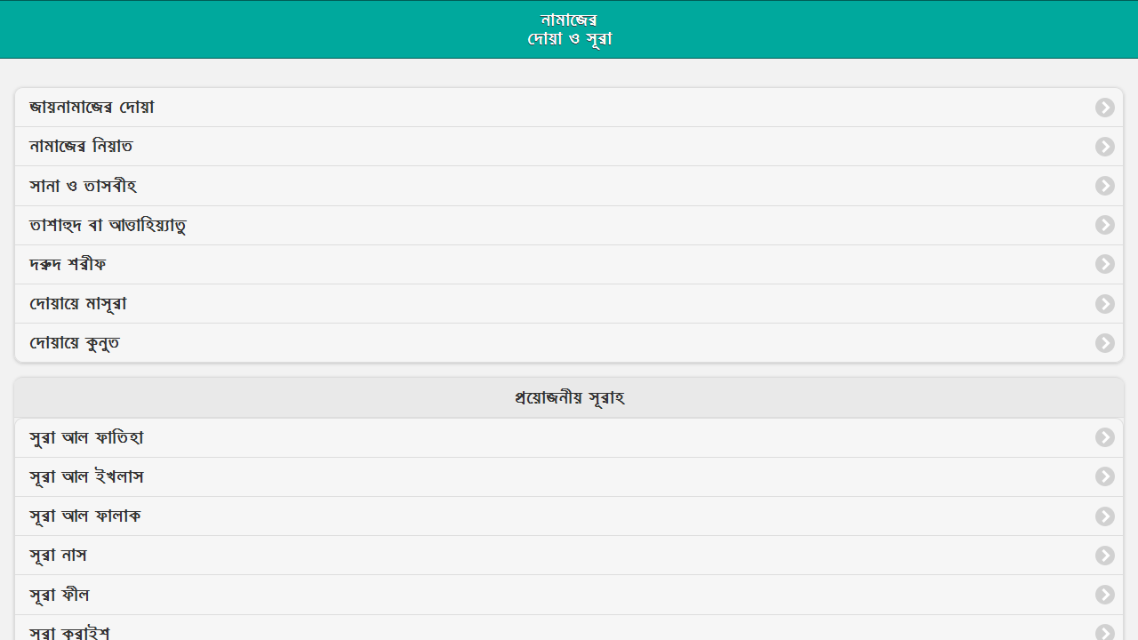 기도하는 법을 모르는 무슬림을 찾는 것이 어려울 수 있습니다. 그러나기도로 제공되는기도와 수라는 많은 사람들에게 기억에 남을 수 없습니다. 그들에게이기도와 수라 앱이 있습니다. 기도의 시작부터 끝까지 모든 타스 비, 수라,기도를 찾을 수 있습니다. 벵골어 발음과 벵골어 번역이 있습니다.