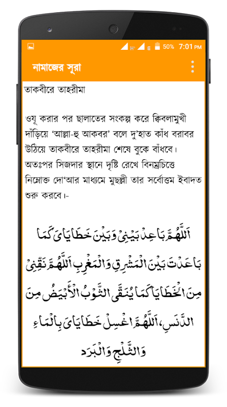 মুসলমান অথচ নামাজ পড়তে জানেন না এমন মানুষ হয়ত খুজে পাওয়া কঠিন। কিন্তু নামাজের মধ্যে যে সকল দোয়া ও সূরা পড়া হয় তা হয়ত অনেকেরই মুখস্থ নেই। তাই তাদের জন্যই এই নামাযের দোয়া ও সূরা অ্যাপ। অ্যাপটিতে পাবেন নামাযের শুরু থেকে শেষ পর্যন্ত সব তাসবিহ, সূরা ও দোয়া। রয়েছে বাংলা উচ্চারন ও বাংলা অনুবাদ।