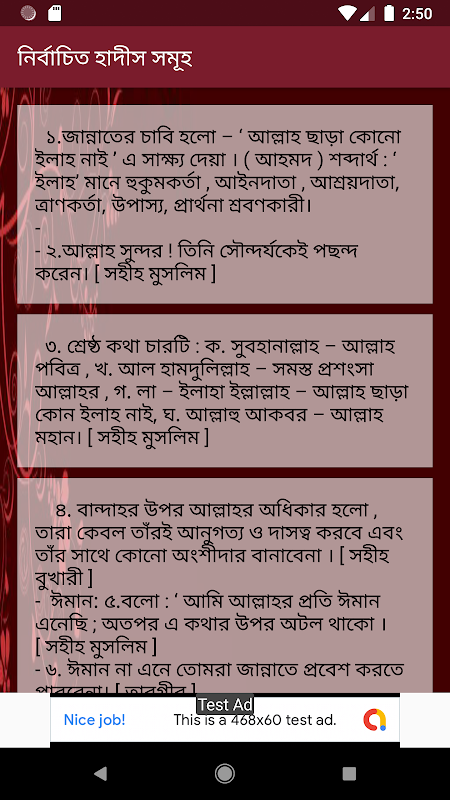 মহানবীর সাল্লাল্লাহু আলাইহি ওয়াসাল্লাম বানী সকল মানুষের জীবন যাপনের প্রতিটি মুহূর্তে কাজে আসবে এই পবিত্র বাণীগুলো যা আমাদের এই অ্যাপটি প্লে স্টোর পেয়ে যাবেন আপনারা খুব সহজে।নির্বাচিত হাদীস সমূহ | মহানবী (সা:) | Hadis আমাদের এই অ্যাপটি হযরত মুহাম্মদ (সাঃ) এর বানী সমূহ নিয়ে বানান হয়েছে যা আপনি যানার মাধম্যে আপনি আপনার জীবনের দৃষ্টিভঙ্গি পরিবর্তন করে দিতে পারে।হযরত মুহাম্মদ সা এর বাণী এবং মুহাম্মাদ (সাঃ) এর হাদিস থেকে আমাদের জীবনের অনেক কিছূর শিক্ষার আসে যা আমাদের জীবন কে সুনাদর করে তুলবে।মহানবীর হাদিস থেকে আমরা নবীর সুন্নাহ সম্পর্কে জানতে পারবো এবং আমরা সকলেই নবীর আদের্শ ও নিদের্শ মেনে চলতে পারবো।রাসূলের বাণী আমাদের সকল মুসলমানদের সঠিকভাবে পড়া উচিত।