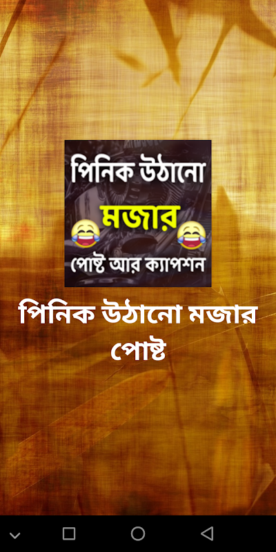 পিনিক উঠানো মজার পোষ্ট অ্যাপসটিতে রয়েছে মজার মজার পিনিক উঠানো পোষ্ট। বন্ধুদের সাথে মজা করতে নতুন পোষ্ট আর ক্যাপশন আপনাদের জন্যই তৈরি করেছি। অ্যাপটি সংগ্রহ করে রাখুন আর মজার স্ট্যাটাস, পোস্ট, এন্ড ক্যাপশন পাঠিয়ে ভালোবাসার মানুষটিকে খুশি করতে পারেন । সব মিলিয়ে আমি আশাবাদি অ্যাপটি আপনাদের পছন্দ হবে ।