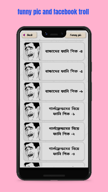 재미있는 그림 앱은 엄청난 양의 재미있는 그림 방글라를 제공하며, 이는 항상 즐겁고 즐겁습니다. 또한 whatsapp에 재미있는 사진, 어린이를 위한 재미있는 사진, 재미있는 농담 사진 앱에도 사용됩니다. 즐거운 순간을 담은 일부 방글라 재미있는 농담 사진의 내용입니다. 일부 방글라의 재미있는 상태 사진은 whatsapp의 재미있는 프로필 사진을 만드는 데 도움이 됩니다.