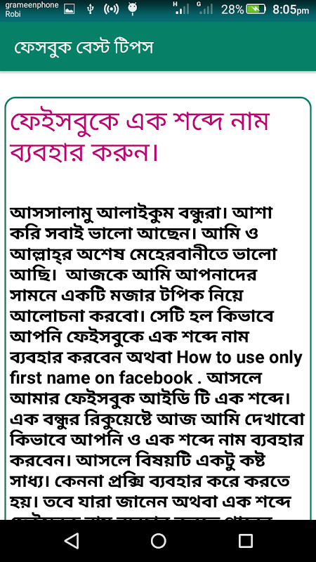 ** ফেইসবুকে এক শব্দে নাম ব্যবহার করুন